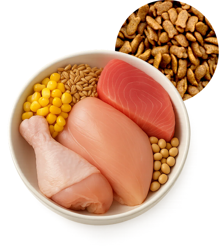 Specially made to support your cat’s healthy body growth, this recipe is packed with quality protein, essential vitamins, and balanced minerals. Whether for young kittens, active adults, or recovering cats, it gives the right nutrients to build strong muscles, support brain and bone development, and boost natural energy — all in one tasty bite.